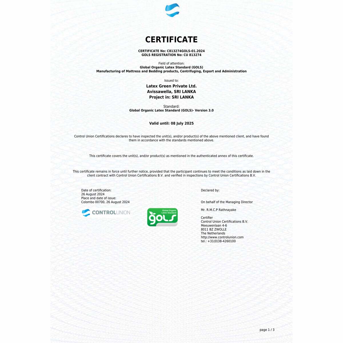 - Natuurlatex is GOLS-gecertificeerd